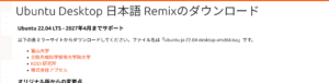 ・Ubuntu 22.04 LTS 日本語 Remix ubuntu-ja-22.04-desktop-amd64.isoをダウンロード(3.2GB)