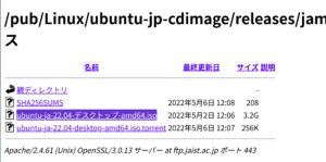 ubuntu-ja-22.04-desktop-amd64.isoをダウンロードします。