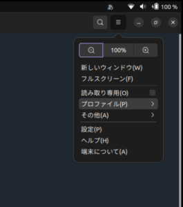 ターミナルのプロファイルを設定したら、プロファイルを選択すると次回ターミナルを立ち上げたときに設定が反映されます。
